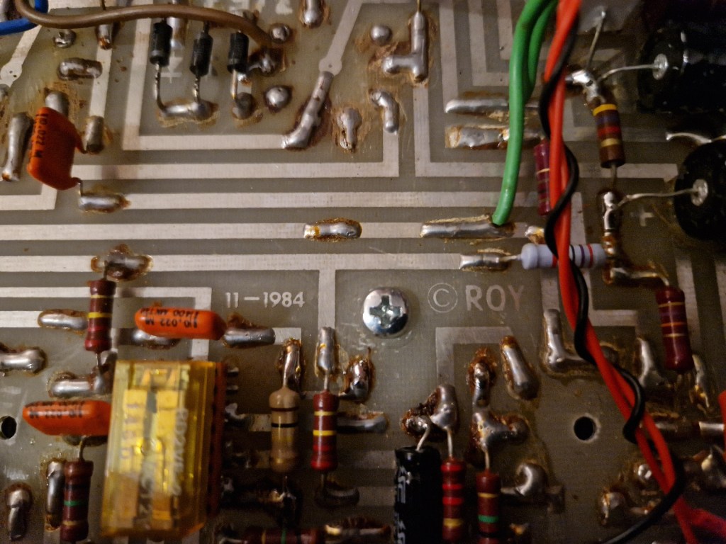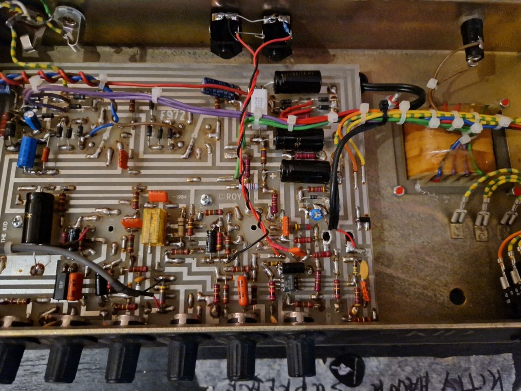 As you can spot this amp was build in 1984 by the Roy brothers. It was already recapped and someone added an FX loop to it.