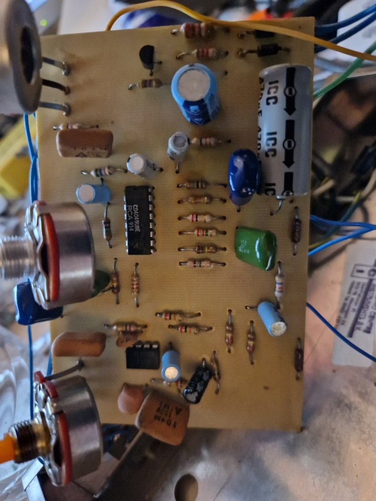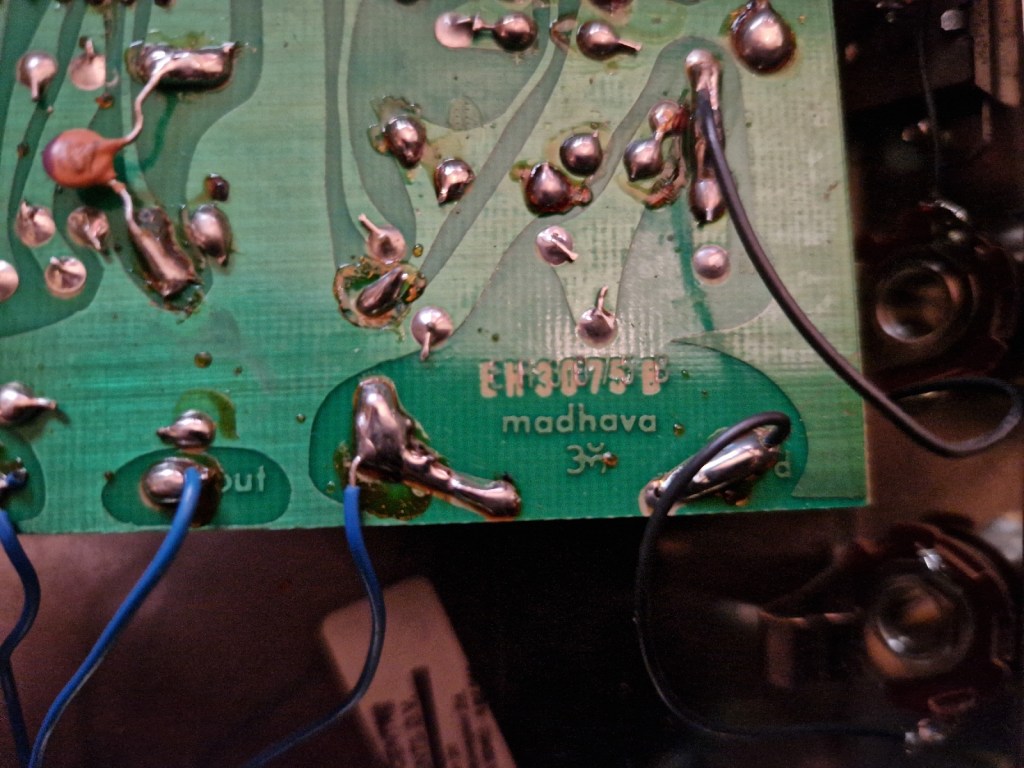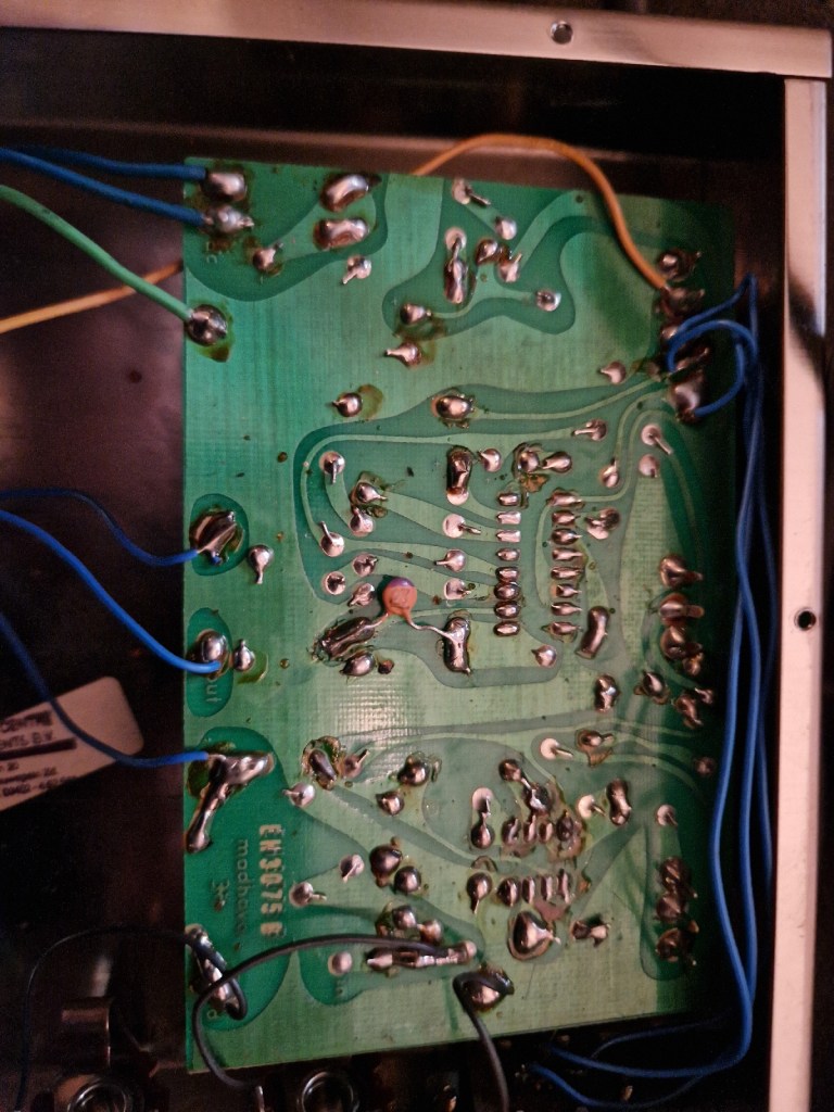 Two versions of the Hot Tubes (vintage) were made (the EH3075 and the EH3075B). Only small components vary. The CMOS IC (which has six CMOS stages) is used for four stages. The other unused stages are kept at a voltage to keep them from interfering. Next to this CMOS IC the unit uses a standard RC4558 IC for the preamp.