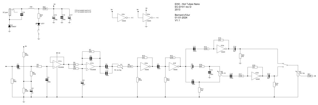 After my former post people asked me about the Nano version of the EHX Hot Tubes CMOS Overdrive pedal. Prior to this I already published the schematic at Freestompboxes.org.
