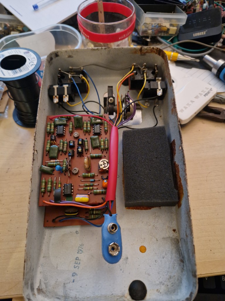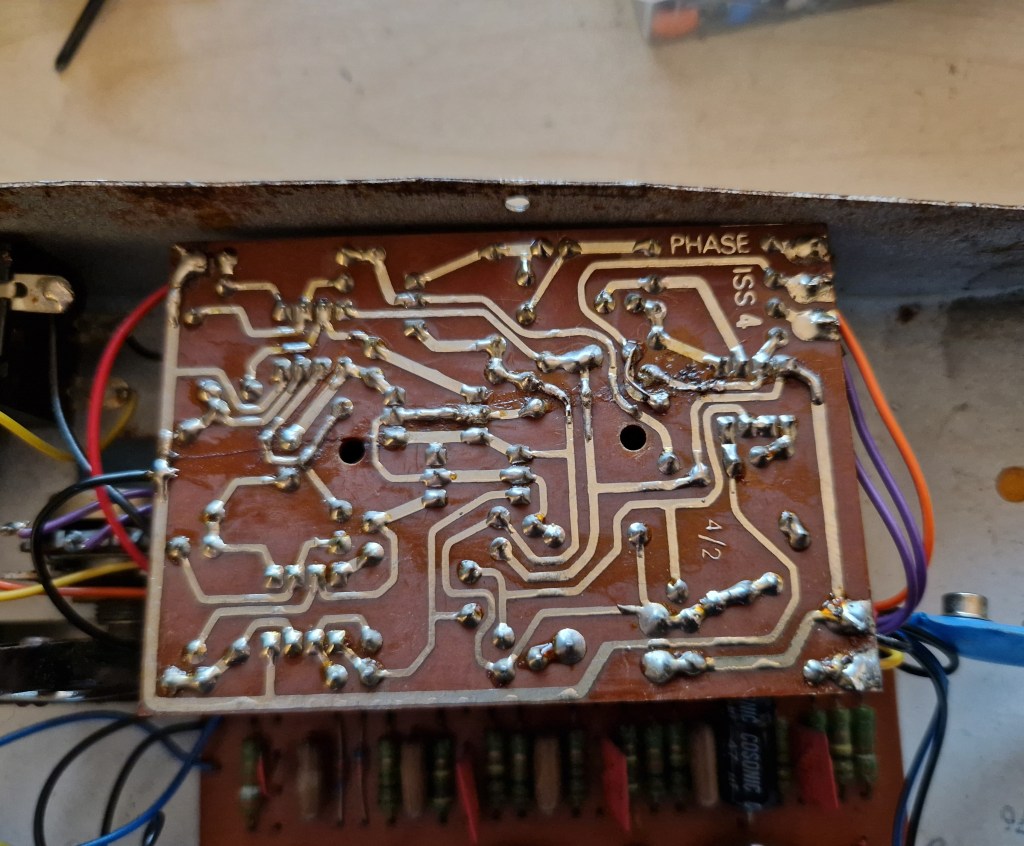 This Colorsound Fuzzphaze was something I haven’t seen before. It came in for some TLC and very little could be found on it.