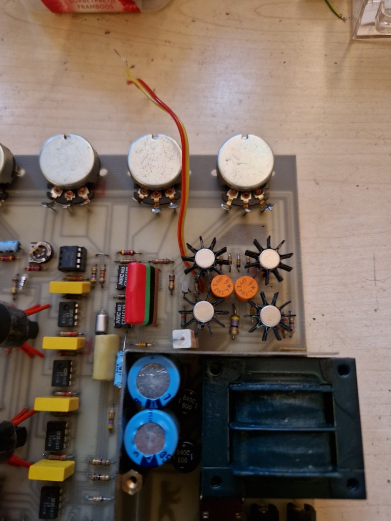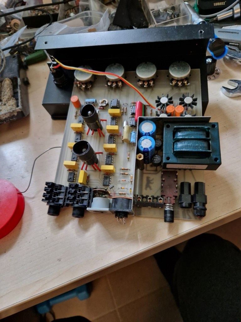This pedal came in as it didn’t function anymore. The problem turned out to be the first opamp that was shot. I’ve replaced the opamp and with the the pedal came back to life!