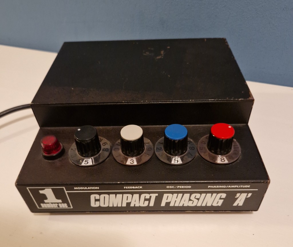 There is a lot of mystery about Gerd Schulte and his compact phaser. I don’t even know if there was a guy called Gerd Schulte or that the company was just named Gerd Schulte Audio Elektronik. The company was located in the Bundesrepublik Deutschland (West Germany) and in the ’70 the company made only one pedal: this Compact Phasing A. This pedal was made in the color black, white (both common colors) and orange (a more rare color). It was used heavily in the German bands like Tangerine Dream and Kraftwerk, but also Richie Blackmore and Jon Lord used this pedal.