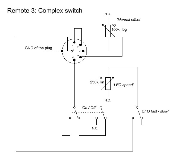 - A more complex remote with two controls (manual offset and speed) and two switches (On / Off and full / half speed)