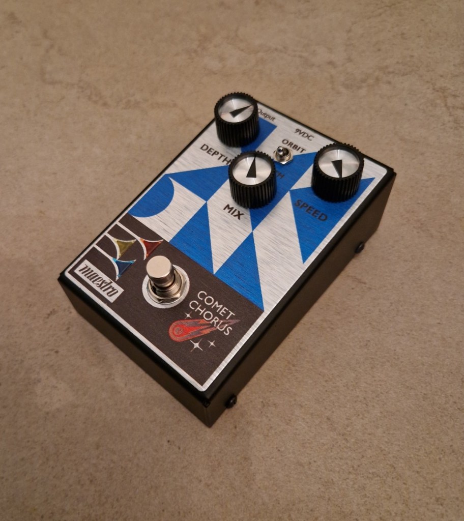 The setup of the pedal is close to most chorus pedal using a V3207 BBD IC (1024 stages / low noise) that takes care of the (short) delay. An LFO makes the modulation giving you controls on the depth and speed of the modulation. The Mix knob lets you asdjust the amount of delay effect in the signal giving you also the ability to make the chorus full-wet (vibrato setting).