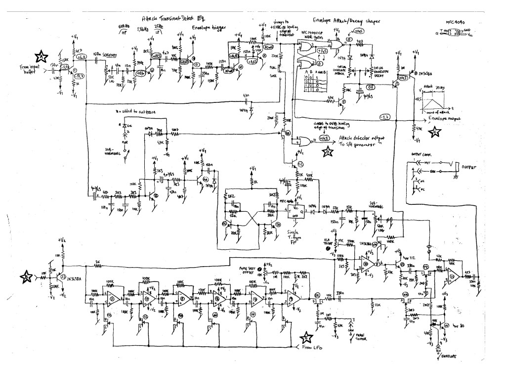 - The envelope section though remained a big problem. It looked like the Filter responded to the ‘Attack’ and ‘Decay’ settings of the slider but the effect was the wrong way around. I traced part of the problem to the replaced transistors (value and type not fitting). I also found 3 transistors that were dead.