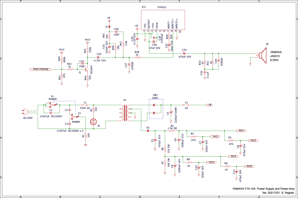 The poweramp is the above named STK-032 poweramp module that feeds into a Yamaha speaker of 8 ohm.
