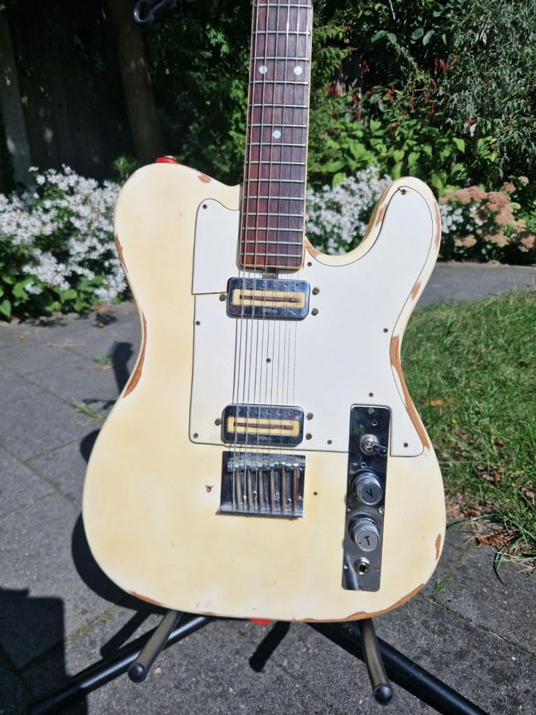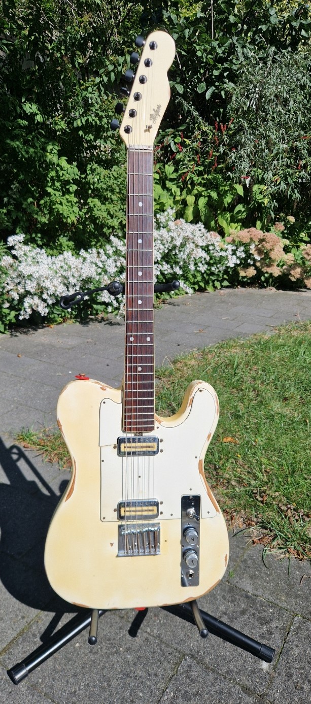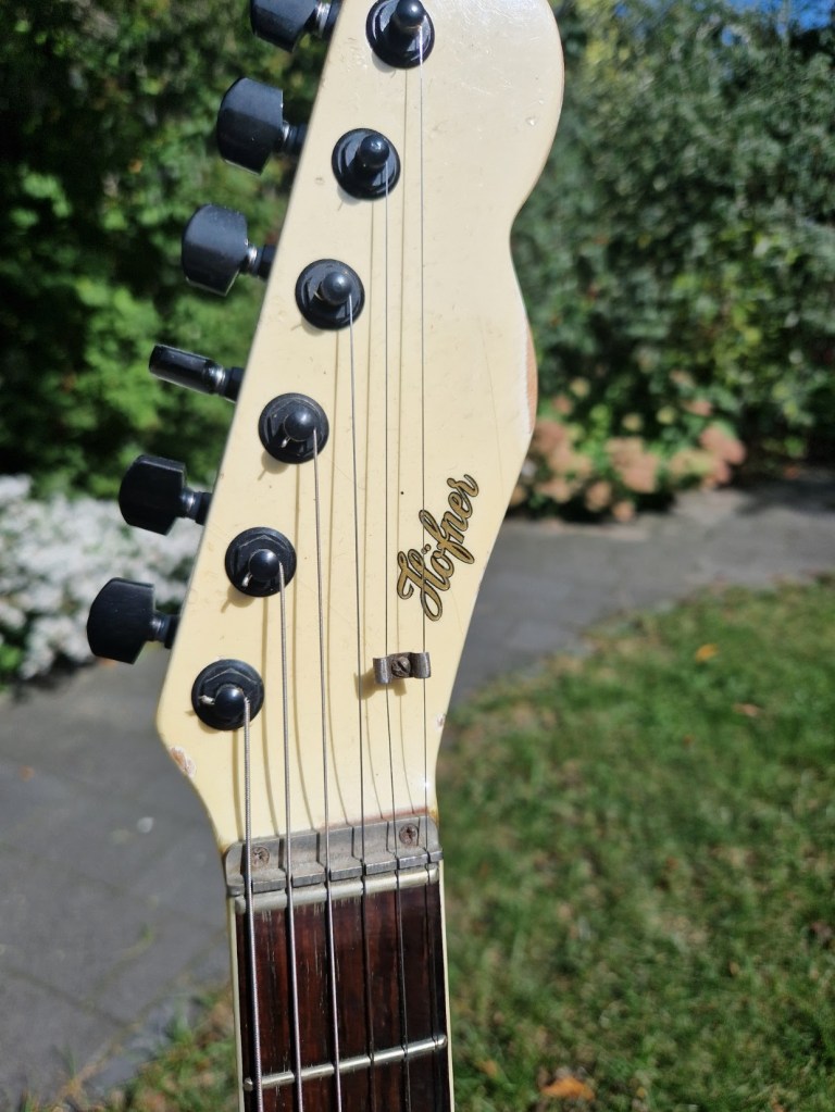 This early 1970’s Höfner model 175 Tele (not to be confused with the Höfner model 175 that was produced in the early 60’s) is an adaptation of the Fender Telecaster but then with Höfner electronics and pickups. This model was released with a tremolo and without. Officially, with the non tremolo versions, an ashtray was fitted over the bridge, but that item was lost a while ago on this guitar.
