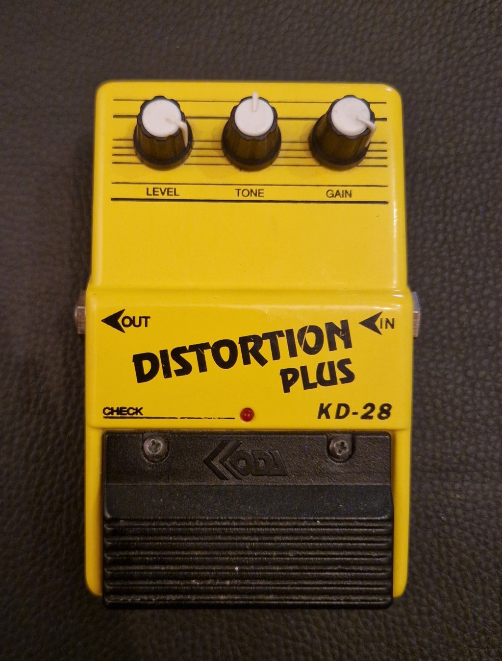 KOD produced a pedal called the ‘Distortion’ in the early 80’s. Later they developed the ‘Distortion plus’ that was kept in line when the brand changed to KODA. The boxes and layout of the controls are similar between KOD and KODA pedals and both pedals have that known double DC input. On the effectsdatabase website are links to the old website with all KODA products.