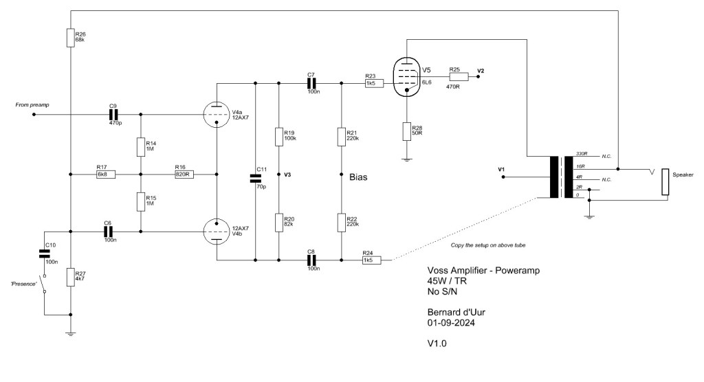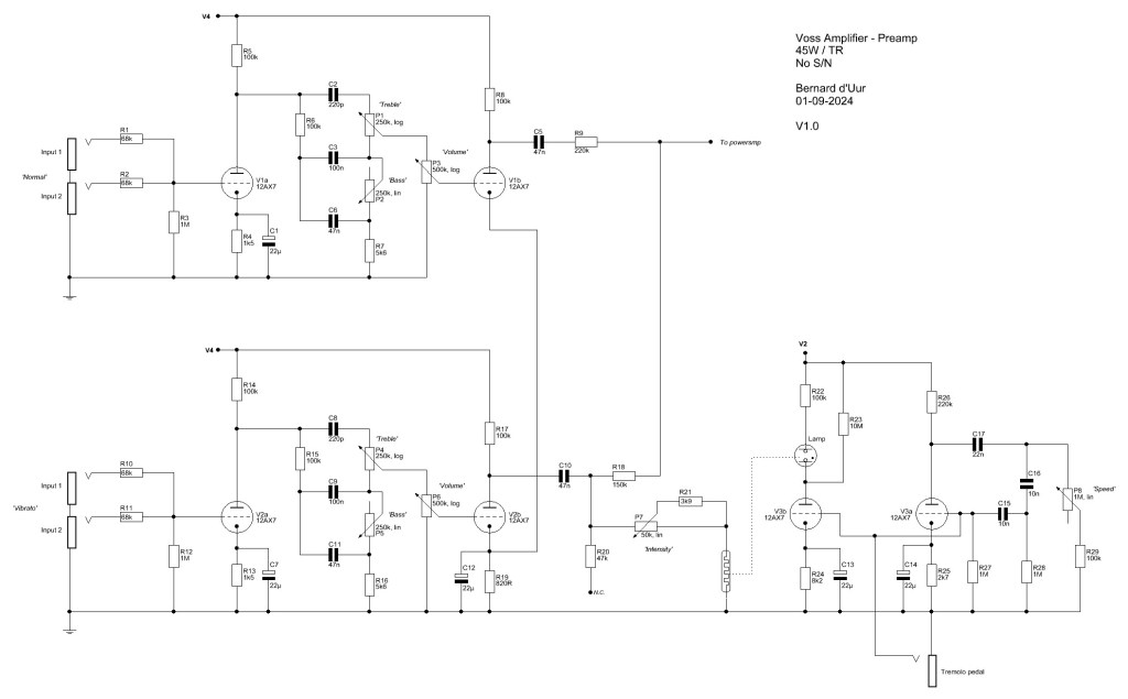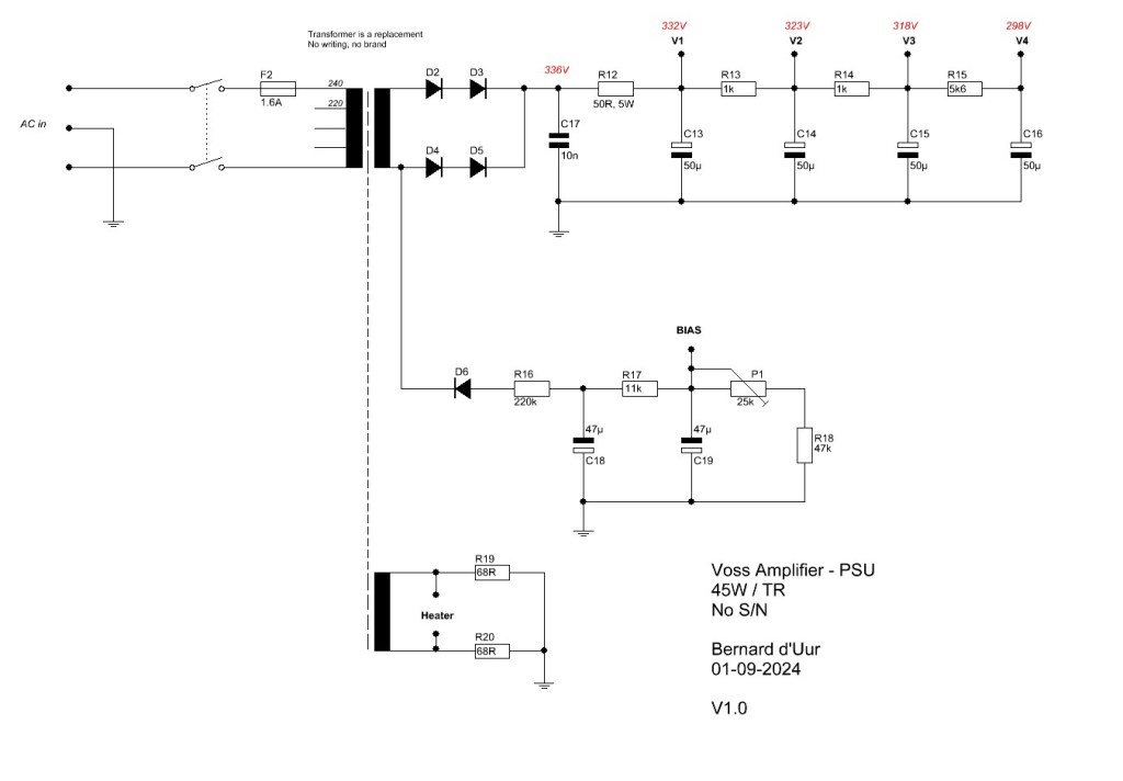 As they also build electric guitars, I assume that they also started to offer amplifiers to these guitars. I have spotted one single post on a forum on a Voss Amplifier, but this is a solid state amp and is different in circuit to the amp on my bench.