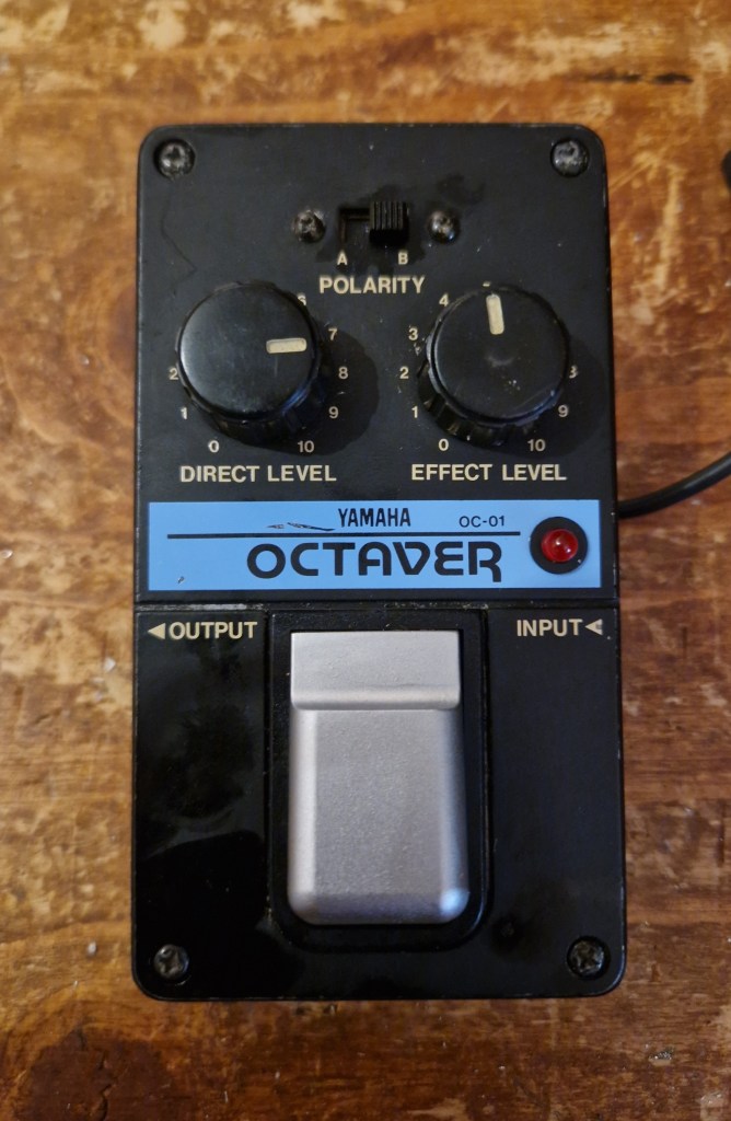 The Yamaha OC-01 Octaver is a simple, monophonic analogue octave down pedal that is produced since the the 1980’s. Korg later released a similar pedal (around 1985) that is the exact same pedal as the Yamaha. The Yamaha pedals were produced to fit inside a PSE pedalboard whereas the Korg pedals were produced to be stand alone pedals. Therefor the Yamaha doesn’t have a DC input but only a battery connector and a way to connect the pedal to the pedalboard.