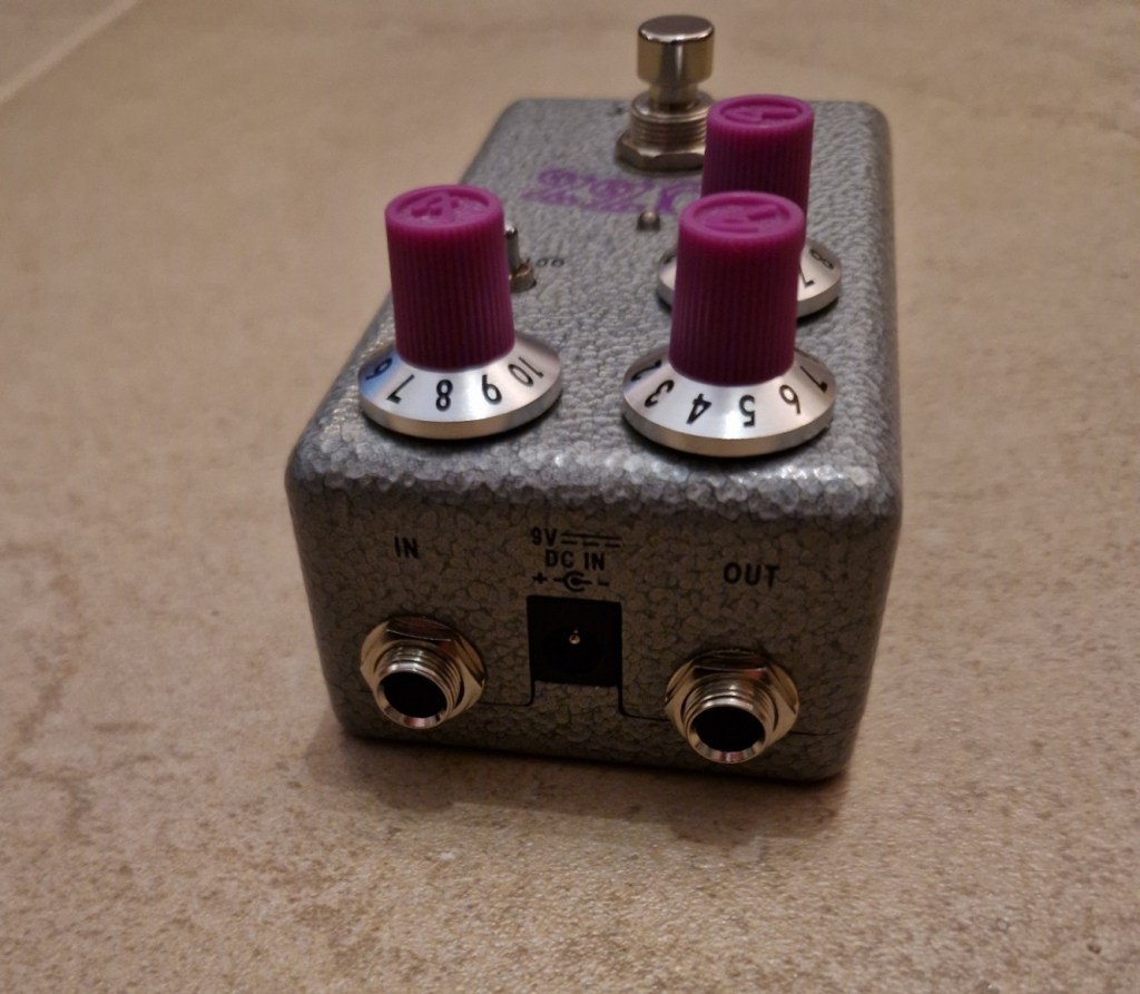 The pedal works slightly better with single coil guitars compared to humbucker guitars. With humbucker guitars the pedal gets even more Velcro-y fast; with a single coil guitar the pedal even added some dynamic to the playing style and stays ‘cleaner’ on the gain dial.