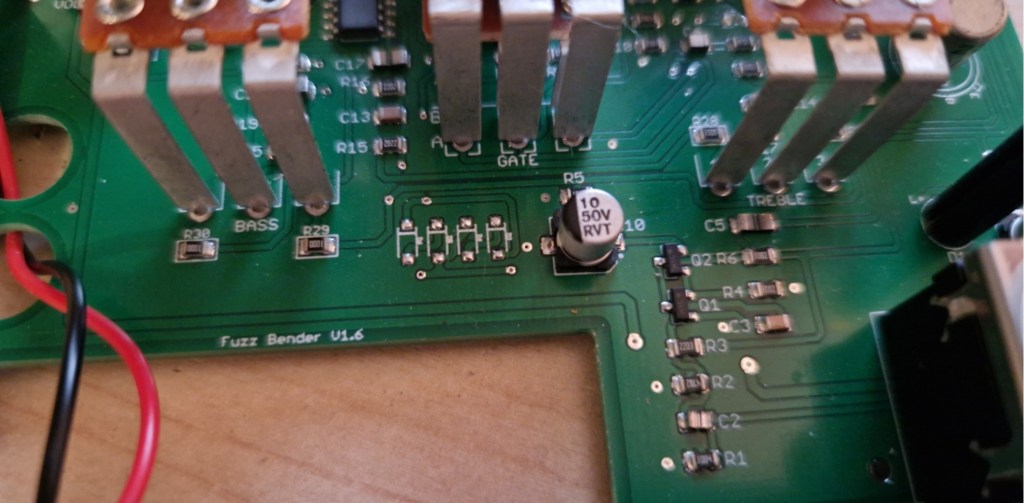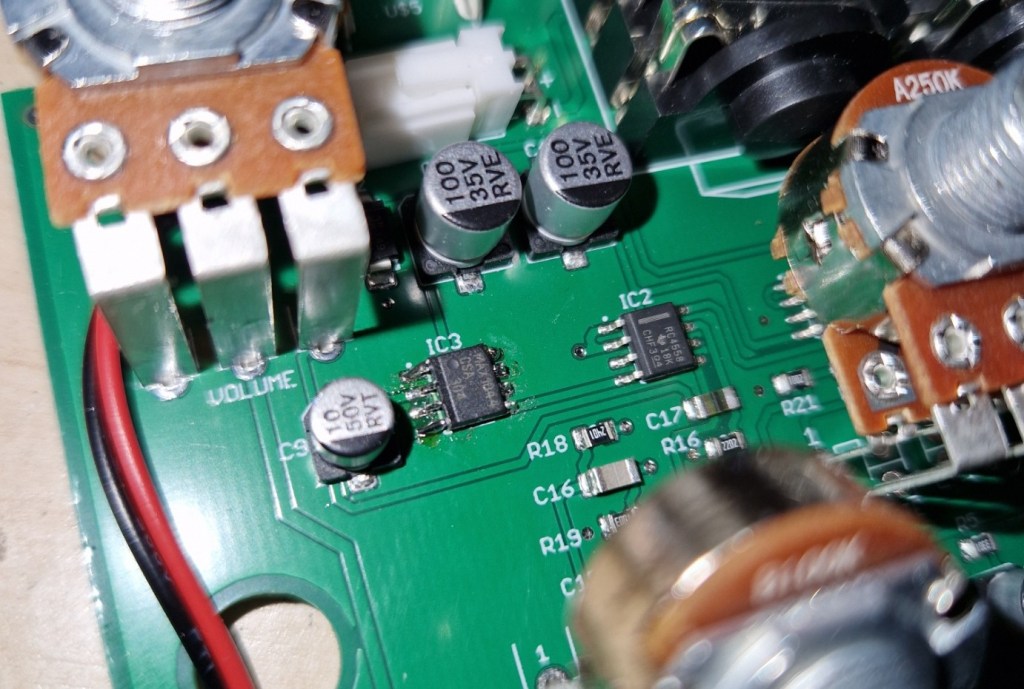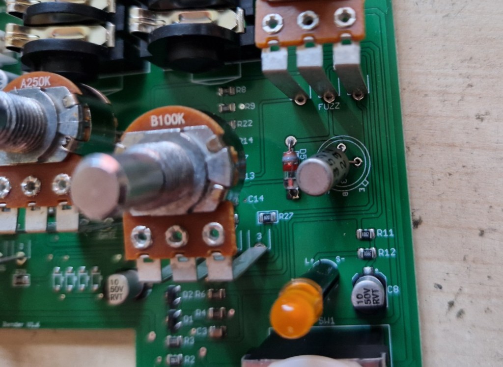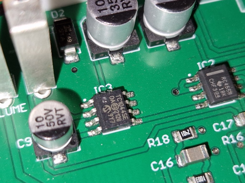 The pedal came in not working. I quickly found that the 1044 IC wasn’t working properly. I simply changed the 1044 IC for another (SMD) 1044 IC and the effect returned in full working order.