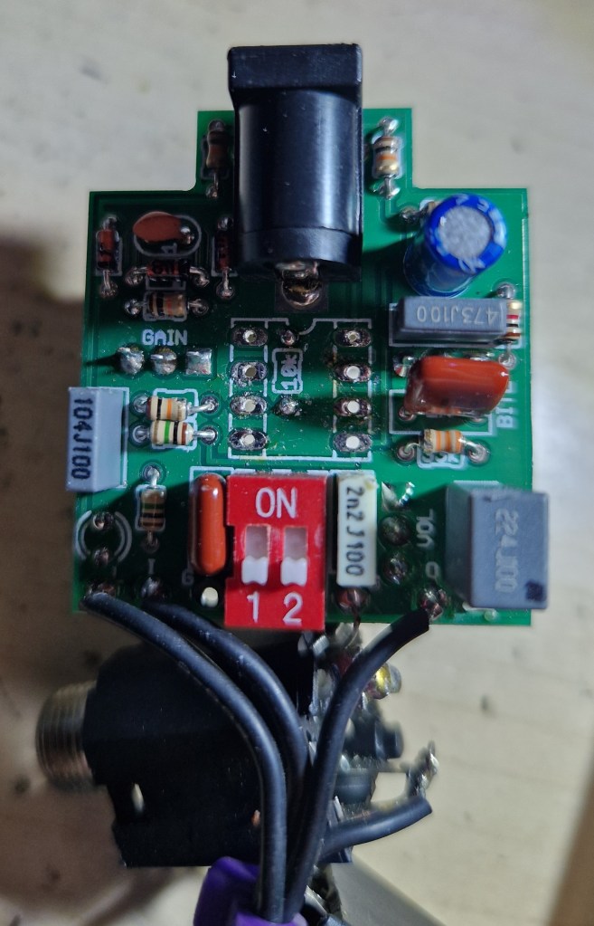 This mini version I got in as it cut out after some time playing. Another tech looked at it and replaced the switch and the opamp; the problem though remained.