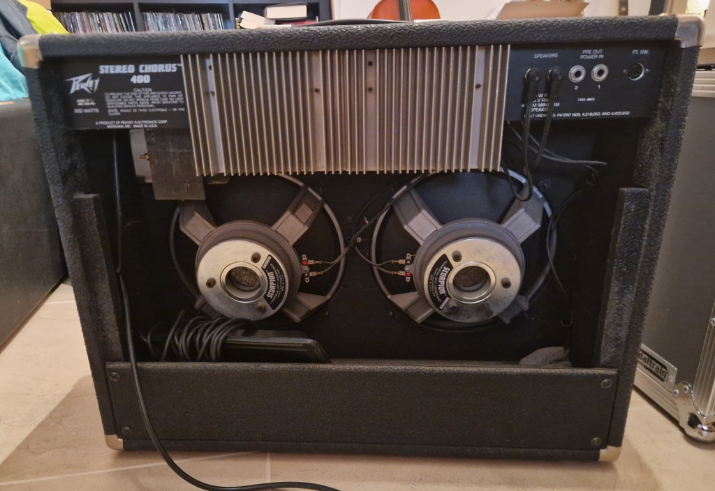In the 80’s solid state amps were ruling. And after the release of the Roland Jazz Chorus, chorus was a known effect to be used with amps. In 1986 Peavey released the Stereo Chorus 400, a 260W (2x 130W) solid state amp with a stereo chorus effect, reverb, 2x 12″ Scorpion speakers and some qualified preamps. The remote footswitch lets you choose preamps, combine preamps but also turn the effects on and off. The amp also came in a top version without the speakers. What is not to like?