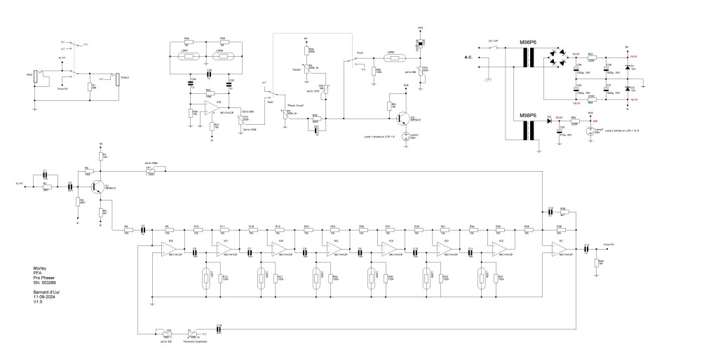 As you can spot there are some differences in the schematics posted above and my traced unit. Morley did differ a lot on parts between units but sometimes the older schematics are just wrong.