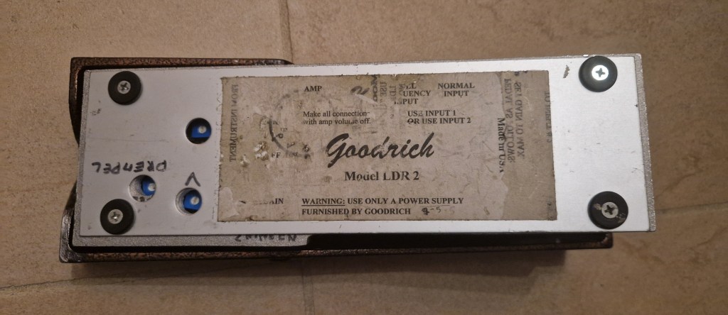 Goodrich is a USA based company that is most famous for their line of volume pedals mostly associated with the steel guitar community. The company started in 1965 with Olly and Curt Goodrich that kept the company running up to 2015; at this time Jim Palenscar and Kevin Ryan purchased the company. The company designed volume pedals but also other accessories fitting the steel guitar (and other guitar) community like boosters and preamps.