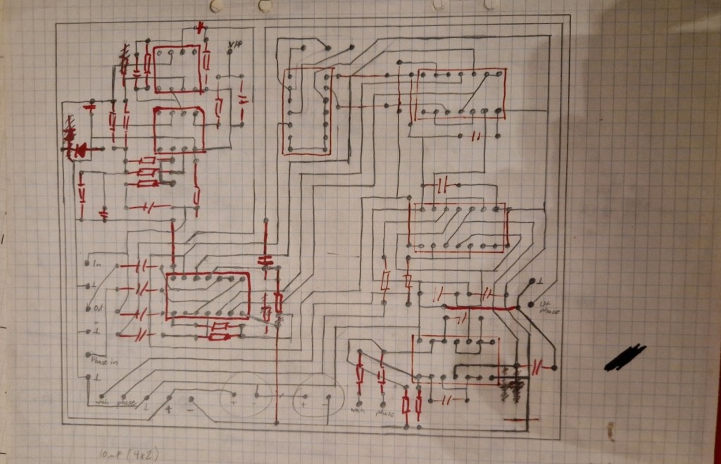 - Replaced the LM324 in the phase circuit with two TL074 IC’s. The phase circuit would overdrive quickly making the sound muddy. By replacing the LM324’s with a TL074 all overdrive vanished.